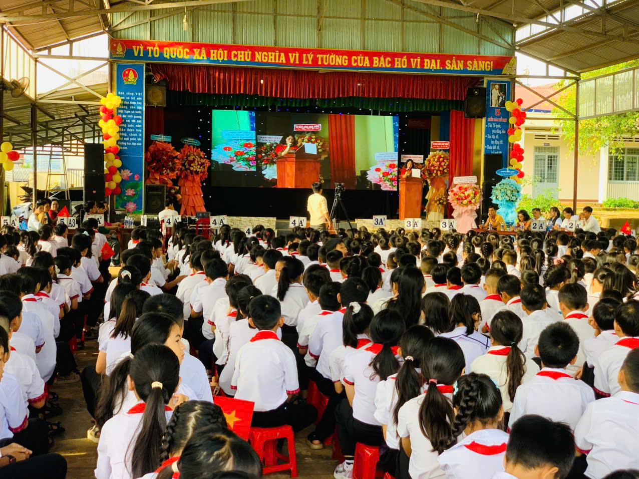 Sáng ngày 5/9/2025, hòa chung không khí hân hoan của học sinh cả nước, học sinh trường tiểu học Nguyễn Tất Thành, Phường Buôn Hồ, Tỉnh Đắk Lắk cũng náo nức đến tập trung trước màn hình led lớn tại sân trường tiểu học Nguyễn Tất Thành, Phường Buôn Hồ, Tỉnh Đắk Lắk để dự buổi lễ khai giảng trực tuyến năm học mới, năm học 2025 – 2026 do Bộ Giáo dục và đào tạo tổ chức.